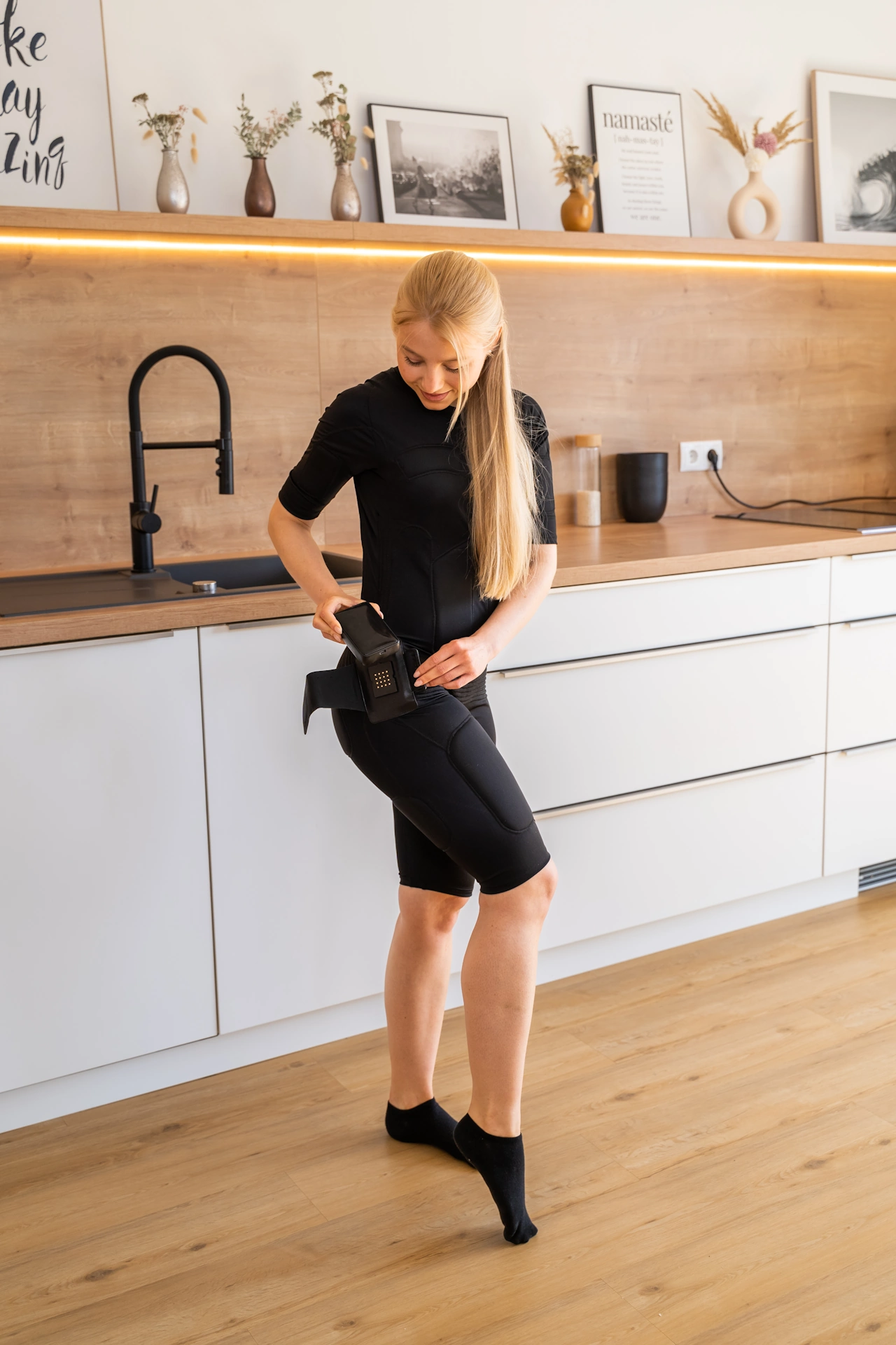 Wie funktioniert das EMS-Training? - Man trägt während des Trainings spezielle Unterkleidung. Darüber kommt eine Elektrodenweste sowie Elektroden an den Beinen, Armen und am Po. Beim EMS Training entsteht eine vollständige Muskelkontraktion, sobald Impulse mit einer gewissen Intensität gesetzt werden.